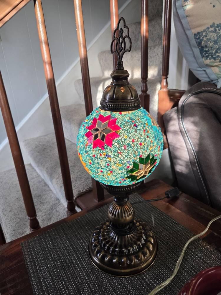 Turkish Mosaic Table Lamp: Stained Glass Bedside Night Light