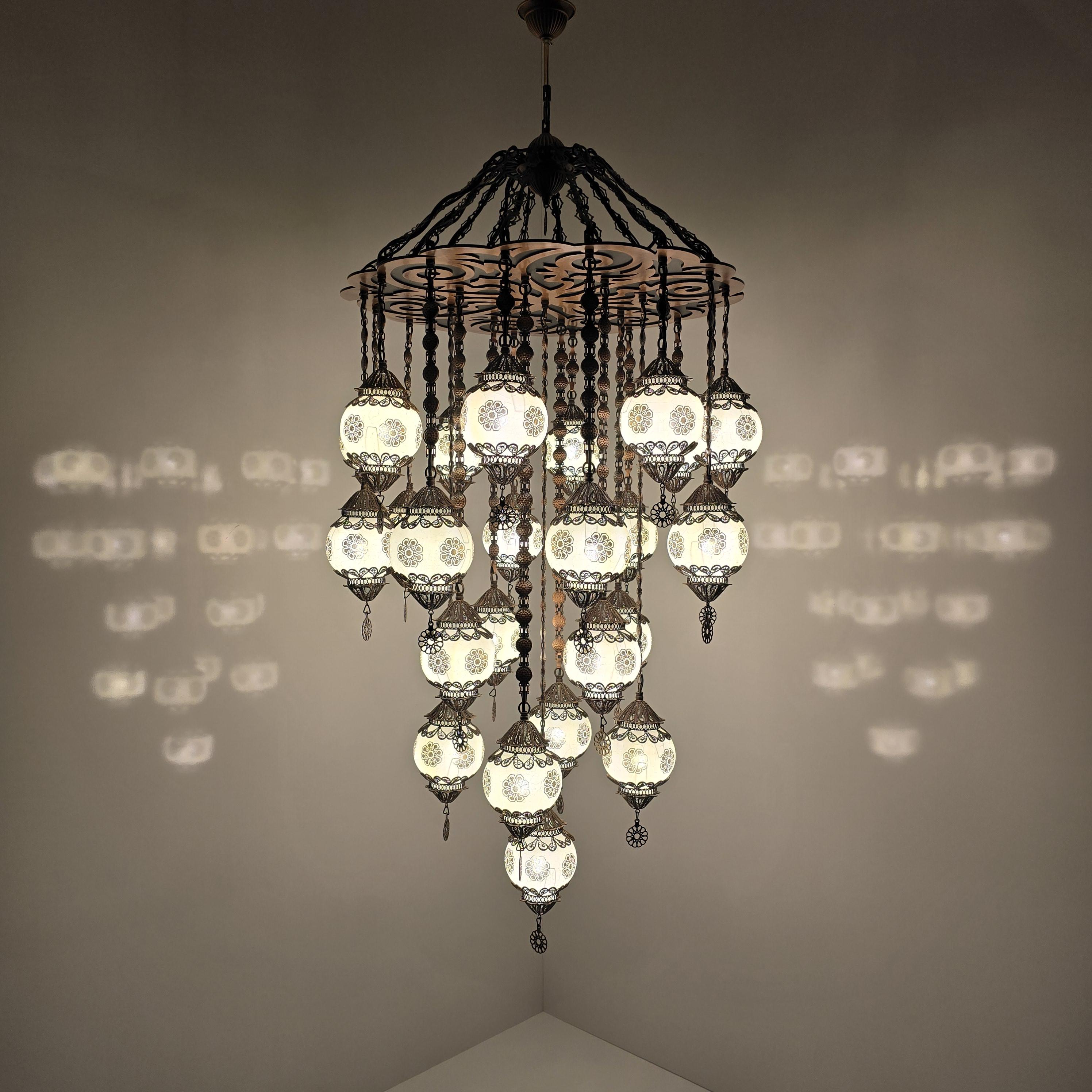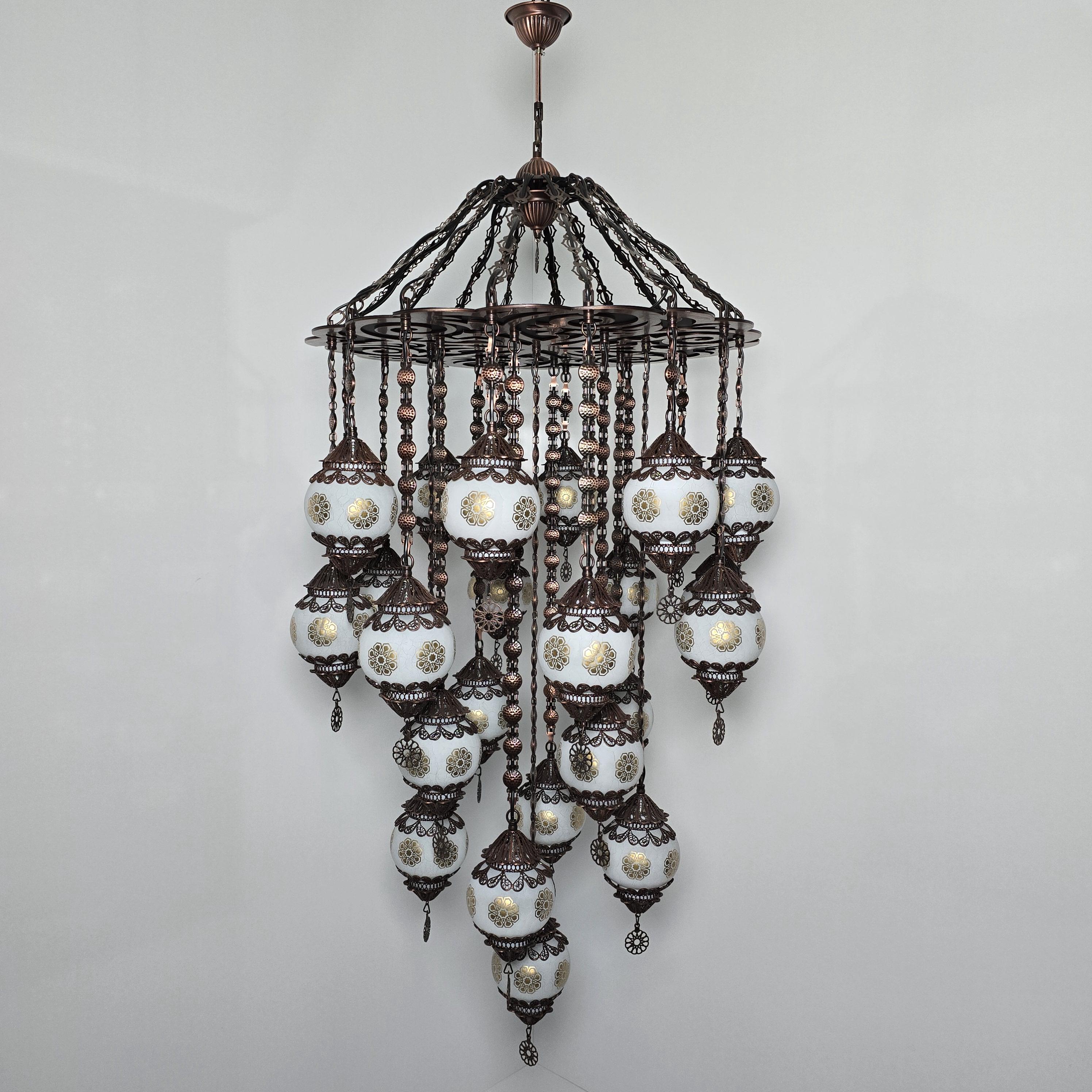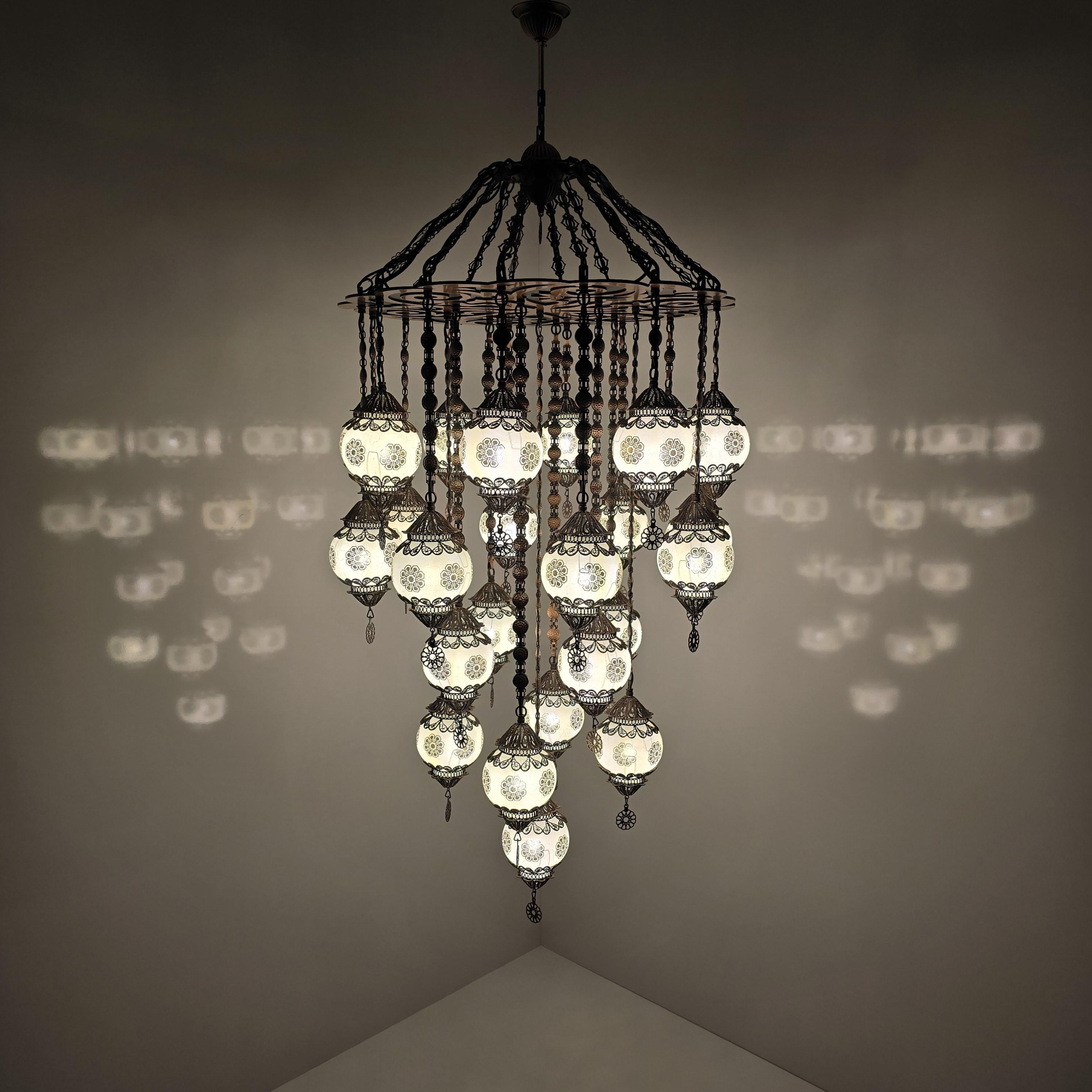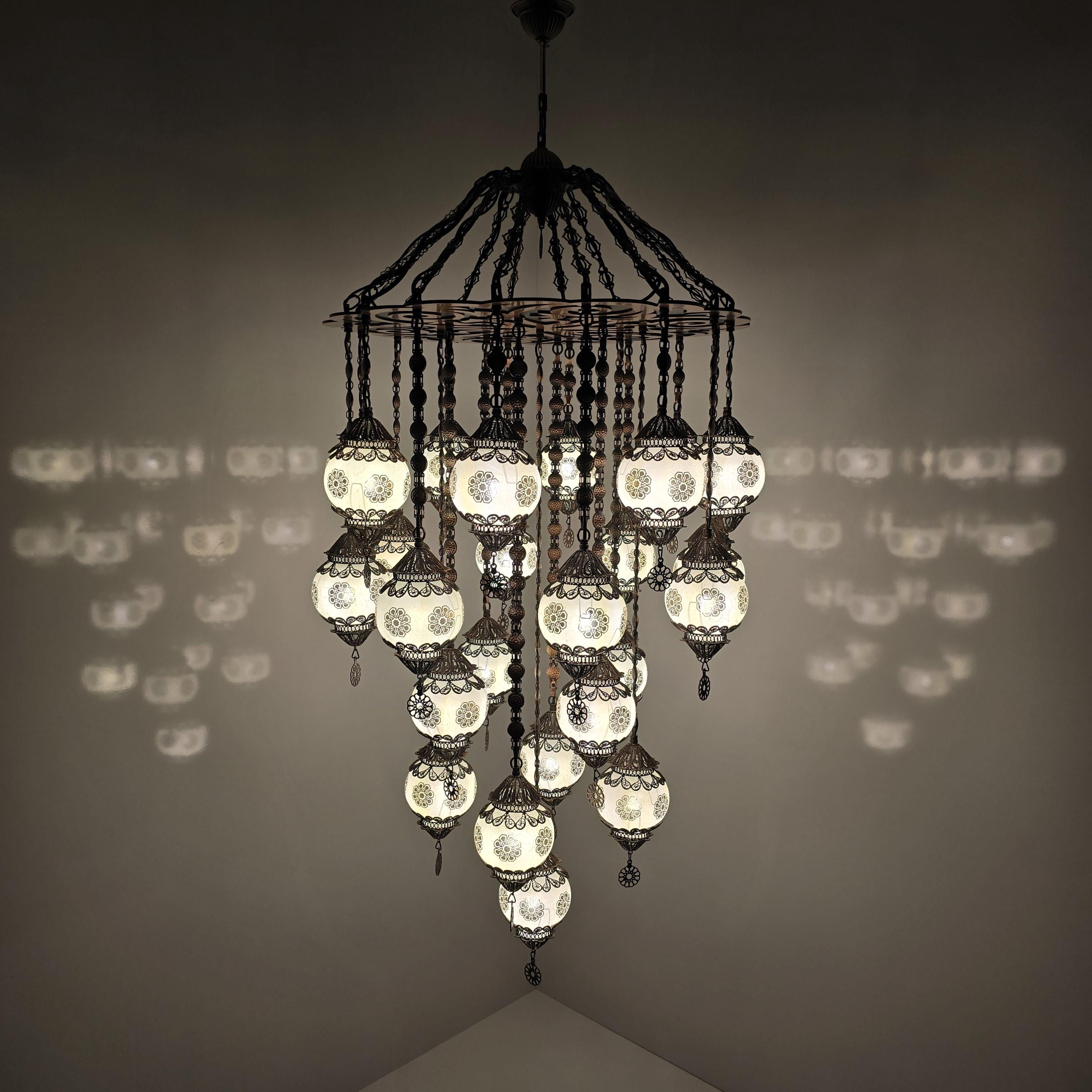Handmade Moroccan Chandelier: Cracked Glass Mosaic Pendant Light