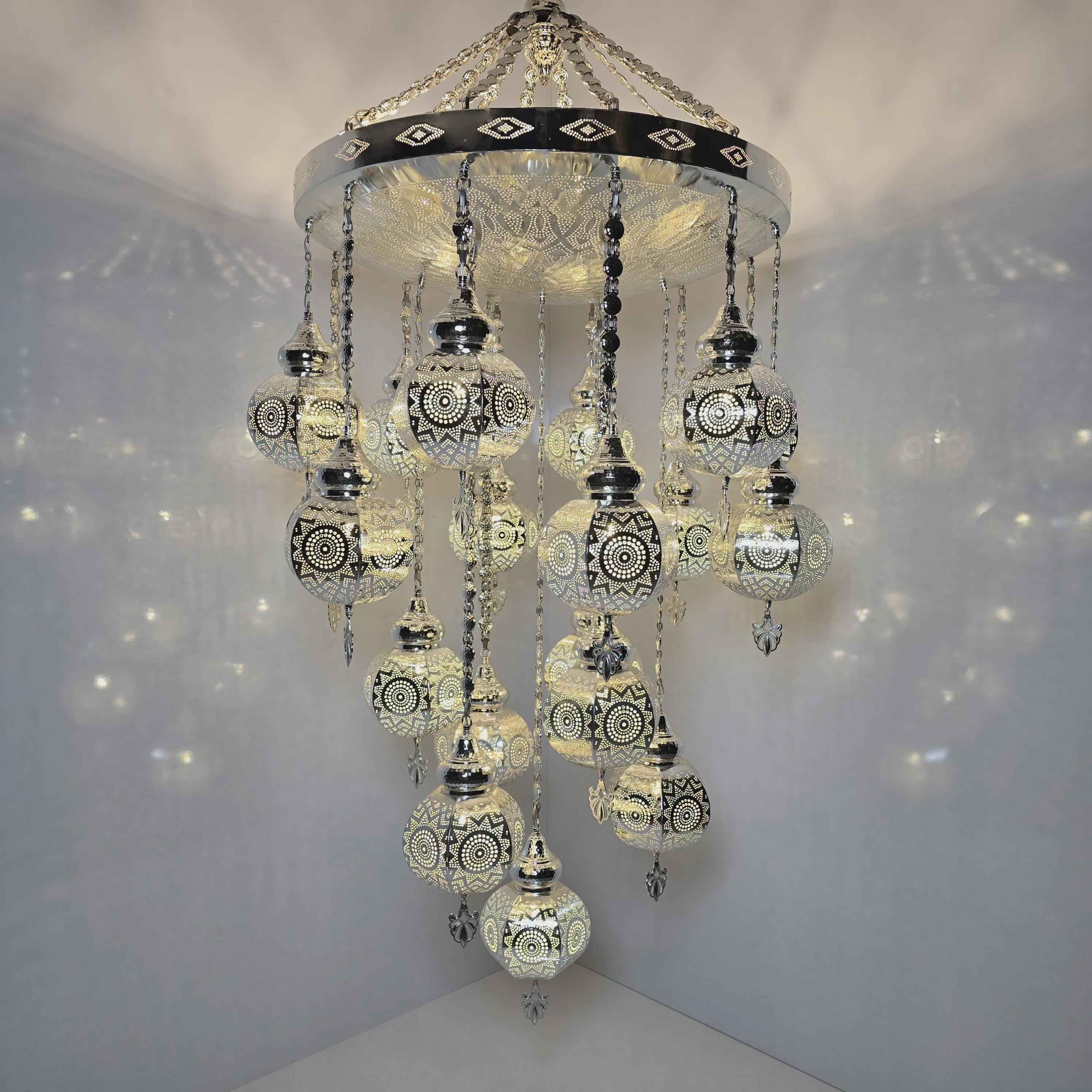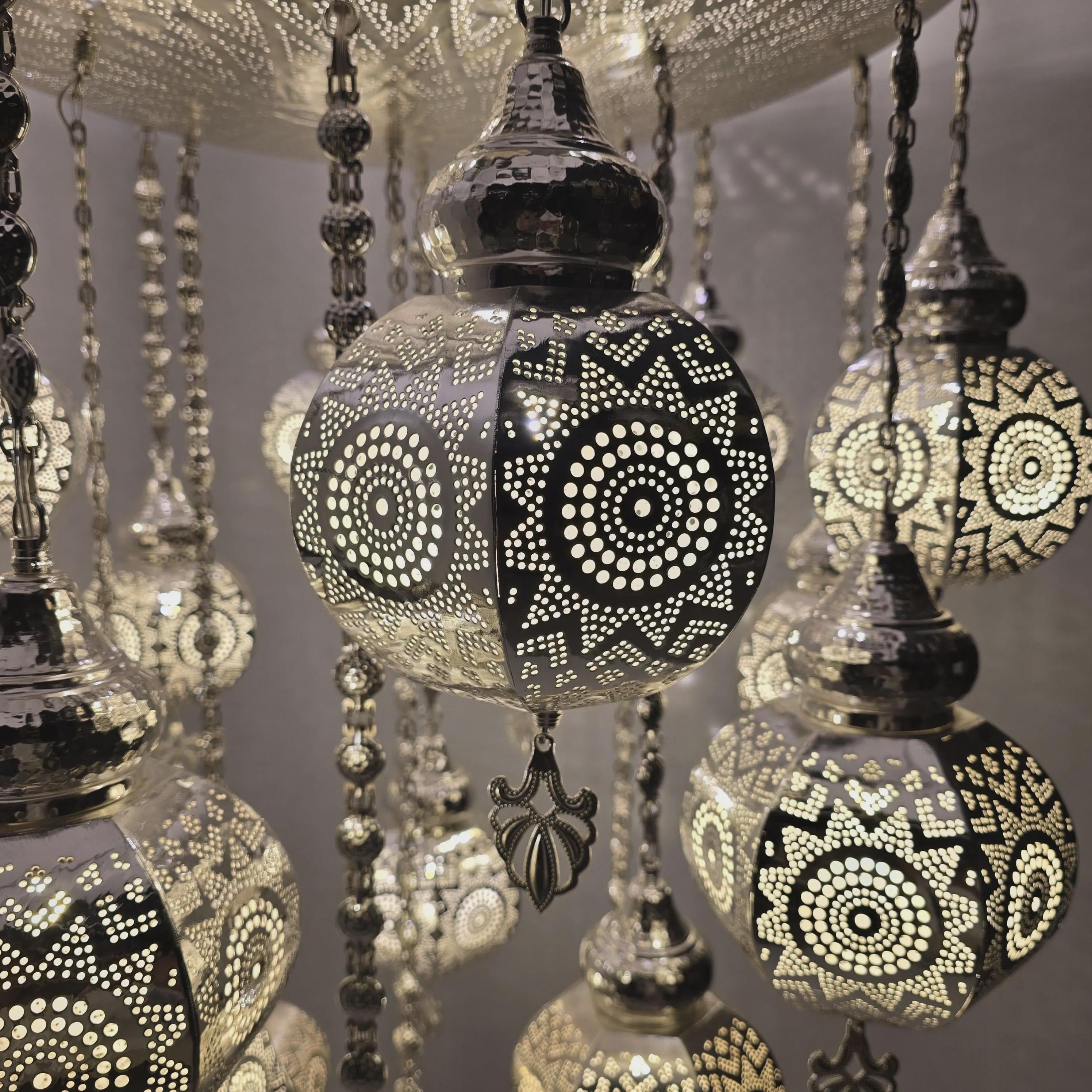 โ ๐๐ก๐๐ง๐๐๐ฅ๐ข๐๐ซ ๐๐ฉ๐ฉ๐๐ซ ๐๐๐ซ๐ญ: Moroccan Model Chandelier Silver Colour